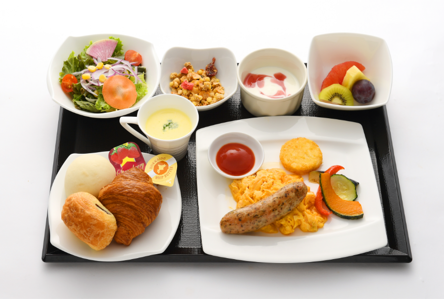 施設内のレストランで豪華な朝食